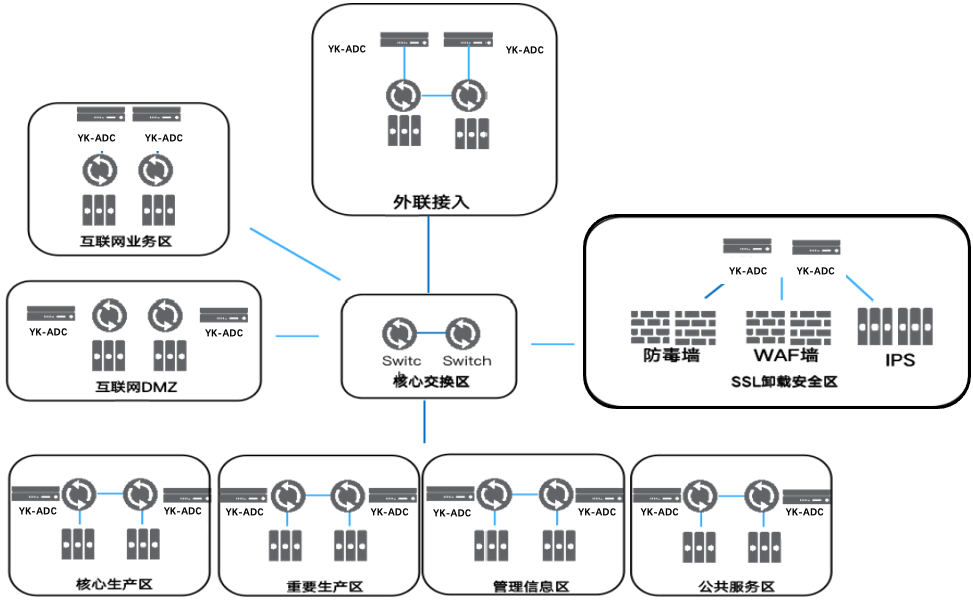 2、網(wǎng)銀接入LLB+GSLB結合,完美解決進(jìn)站出站流量多鏈路負載、雙中心智能調度,智能聚合多條運營(yíng)商鏈路,整合雙中心應用系統資源