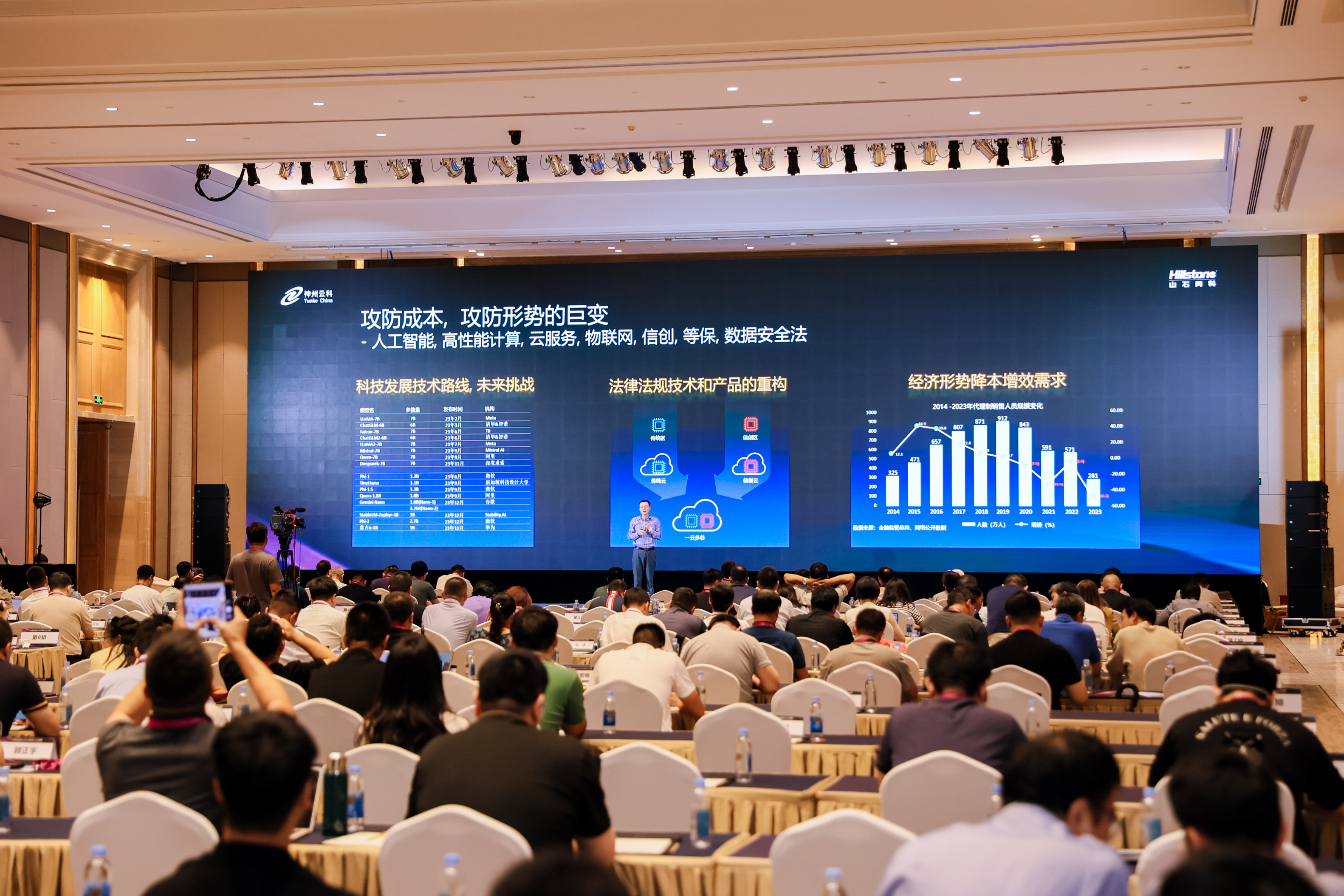 在會(huì )上吳靜濤就當前面臨的情況:外企退出,人工智能等新科技的引入,從如何設計全新的安全架構,應對信創(chuàng )的國產(chǎn)化策略;如何解決性能和穩定性,同時(shí)還要保證低成本的降本增效等3個(gè)方面進(jìn)行了闡述: