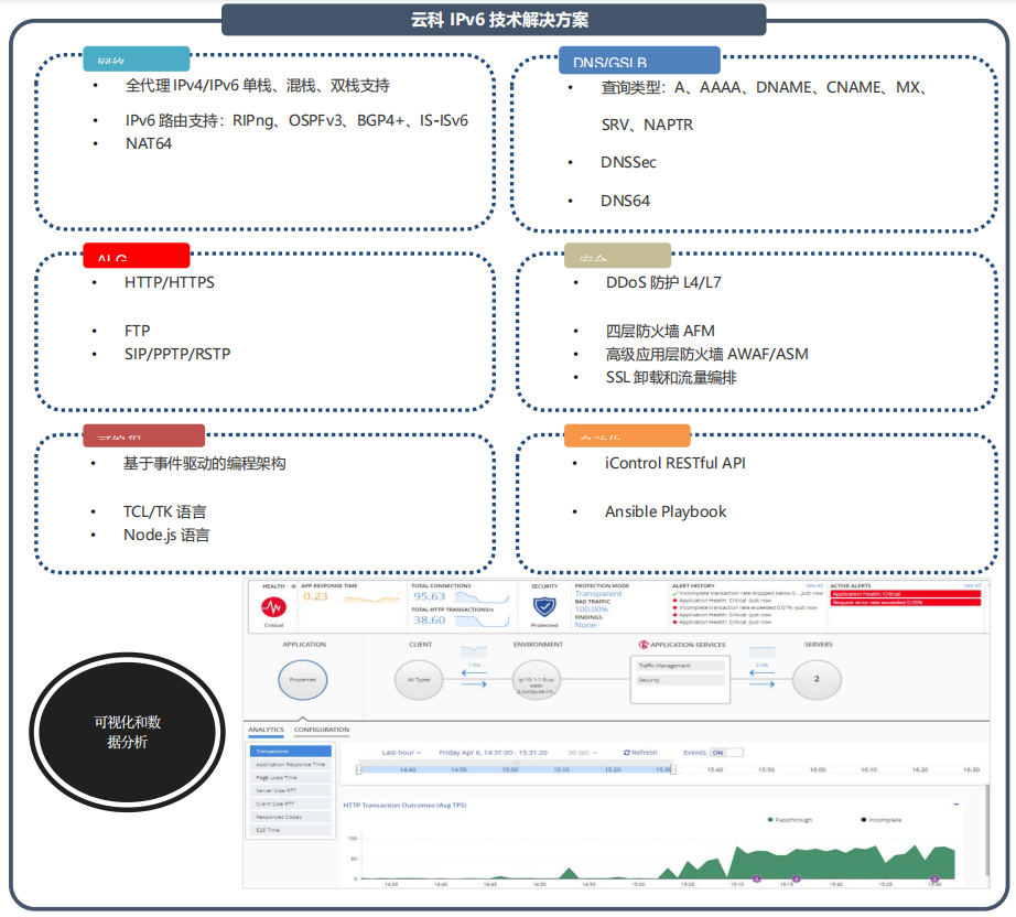 全球范圍內支持無(wú)線(xiàn)和互聯(lián)網(wǎng)的設備日益增多,導致 IPv4 地址快速耗盡。與此同時(shí),IPv6 的普及速度比預計的要慢。服務(wù)提供商需要一款解決方案,幫助他們應對 IPv4 地址耗盡的問(wèn)題,并基于無(wú)縫遷移到 IPv6 以實(shí)現網(wǎng)絡(luò )優(yōu)化。通過(guò)提供大量的IP地址轉換、快速的NAT 轉換率、高吞吐率能力和高速的日志審計功能實(shí)現運營(yíng)商級平臺的可擴展性。