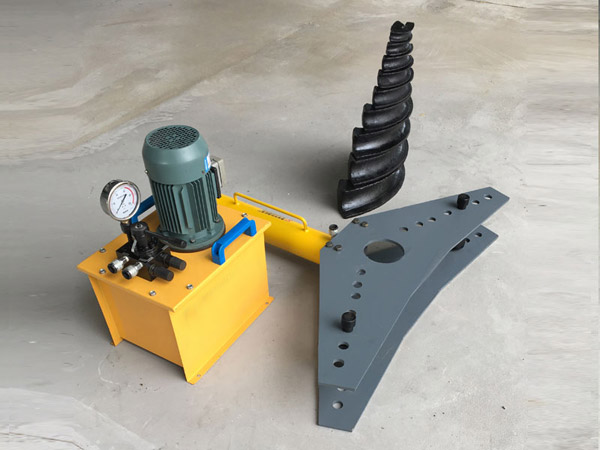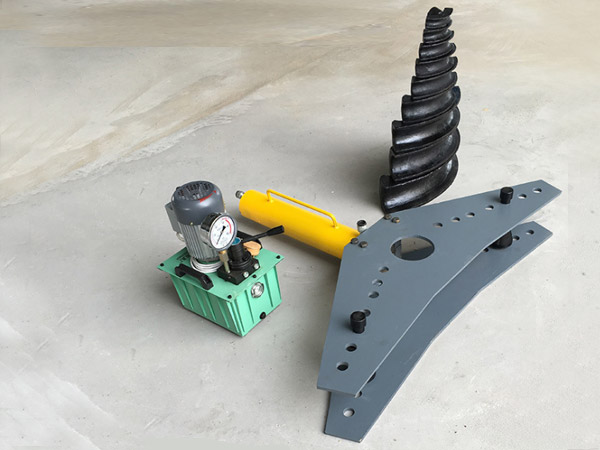 由電動油泵(10),高壓油管(12),快速接頭(13),工作油缸(8),柱塞(7),彎管部件[包括上花板(3),下花板(14),模頭(4),輥軸(2)]組成。由電動油泵輸出的高壓油,經高壓油管送入工作油缸內,高壓油推動工作油缸內柱塞,產生推力,通過彎管部件彎曲管子 。