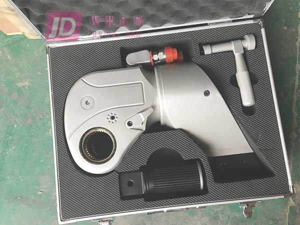 驅(qū)動(dòng)式液壓扳手屬于液壓扭矩扳手中的一種。YD型液壓扳手結(jié)構(gòu)緊湊,體積小,重量輕,輸出扭力大,是螺帽拆卸和螺栓預(yù)緊的得力工具。扭力控制在此3%范圍內(nèi),能滿足聯(lián)接預(yù)緊高精度扭力值的要求。單向棘輪棘爪機(jī)械防止驅(qū)動(dòng)軸逆轉(zhuǎn),確保操作可靠,可調(diào)整支承力臂,充分適應(yīng)不同作業(yè)環(huán)境,不受空間限制,操作得心應(yīng)手。 標(biāo)準(zhǔn)四方形驅(qū)動(dòng)軸,配合不同規(guī)格套筒,適合多種場(chǎng)合應(yīng)用。